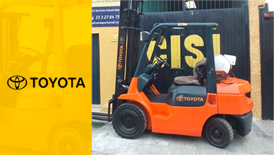 Modelo 7fg25 Capacidad de 5000lb Año 2002 Mastil duplex de 4 mts Motor toyota a gas lp Desplazador lateral Llanta solida al 80% de vida Horquillas de 42”
