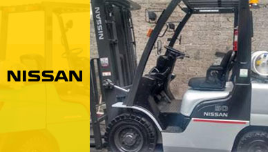 Modelo P6000 capacidad de 6000lb llantas todo terreno motor Nissan K25 a gas lp altura máxima de 4.75 mts Desplazador lateral Respaldo de carga